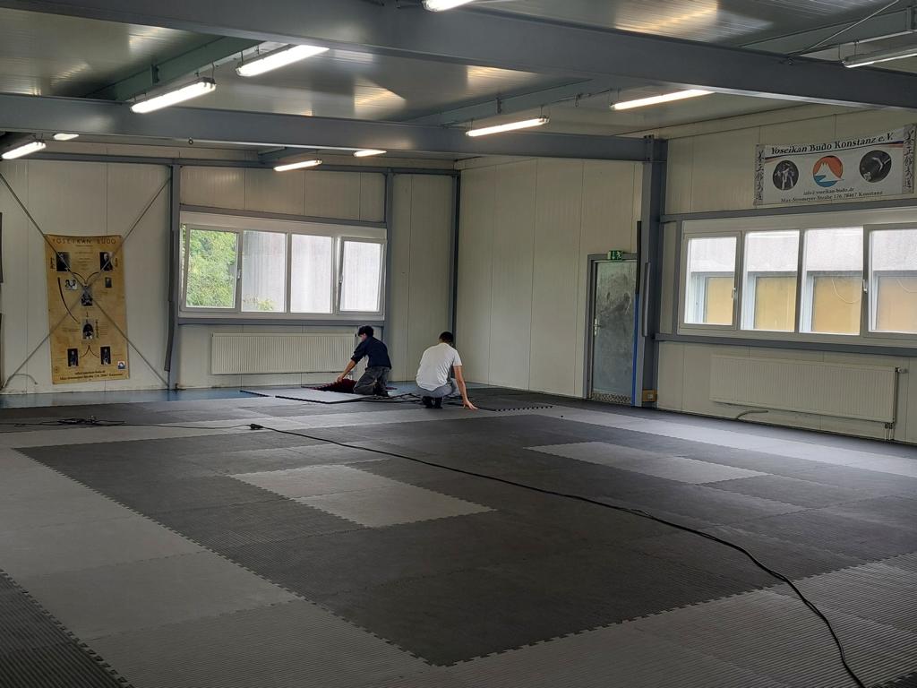 Am 2. August war es endlich so weit: Im von uns genutzten Trainingsraum wurden neue Matten ausgelegt. Damit steht uns nun eine vollständig mit modernen Trainingsmatten ausgestattete Trainingsfläche zur Verfügung, ideal für unser Yoseikan-Budo-Training.